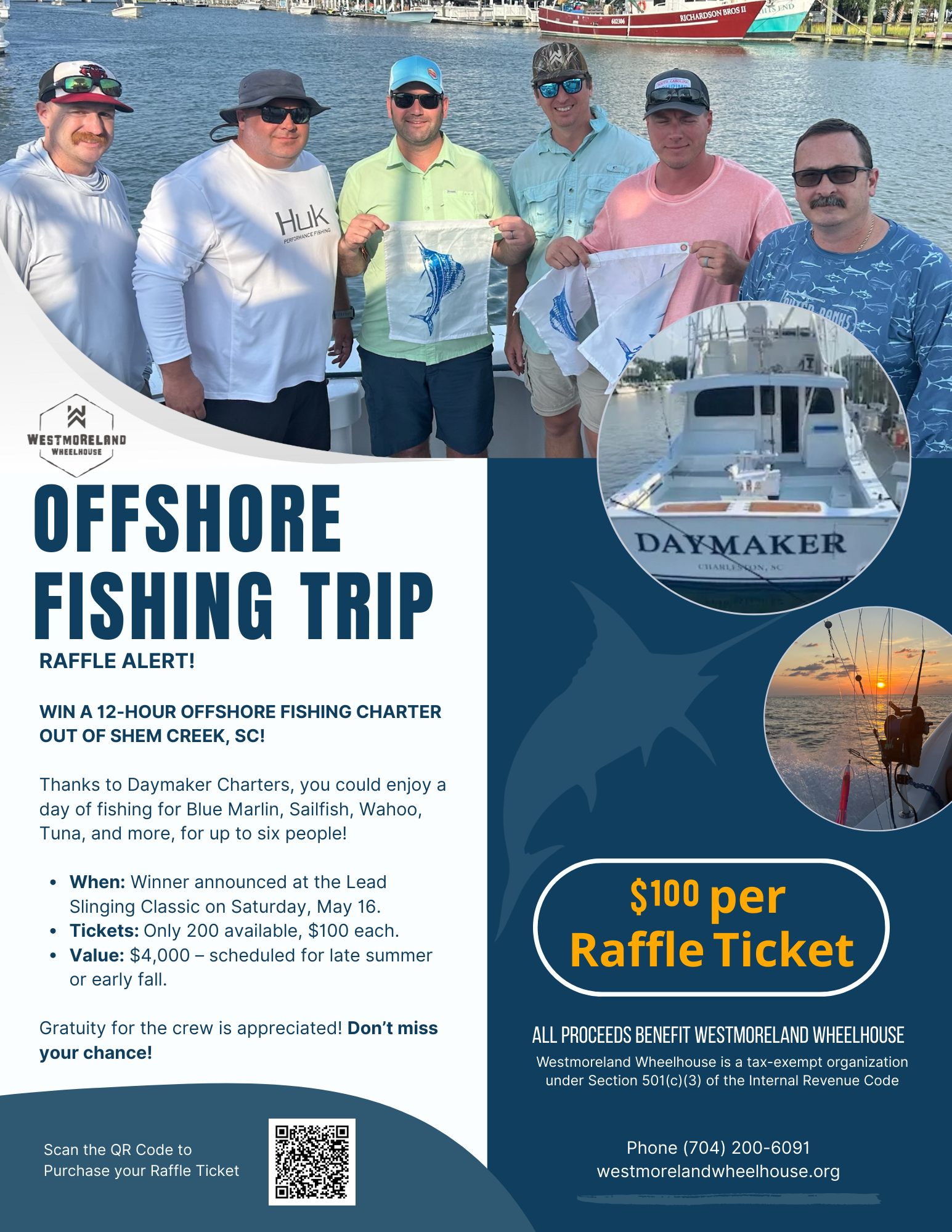 Only 200 raffle tickets available — giving you incredible odds to win this exclusive experience. The raffle drawing will take place at the Lead Slinging Classic on May 16. The charter will be scheduled for late summer or early fall, based on availability.